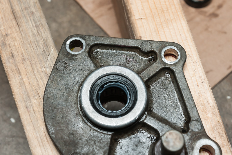(Thread Starter) | Not Ranked : 0 score Thanks. Are you asking how it leaked; the seal just wore out? You have not only rotational force applied to the seal, but also vertical force. They're just using a basic single lip shaft seal, it's cheap and effective for holding such a small amount of pressure. I suppose they could have used something with a garter spring, double lip, made of Viton, but is it really worth the money? While they certainly would have sealed better, once they wear you're gonna have the same problem. Getting 100,000k+ miles out of it isn't a bad deal. |