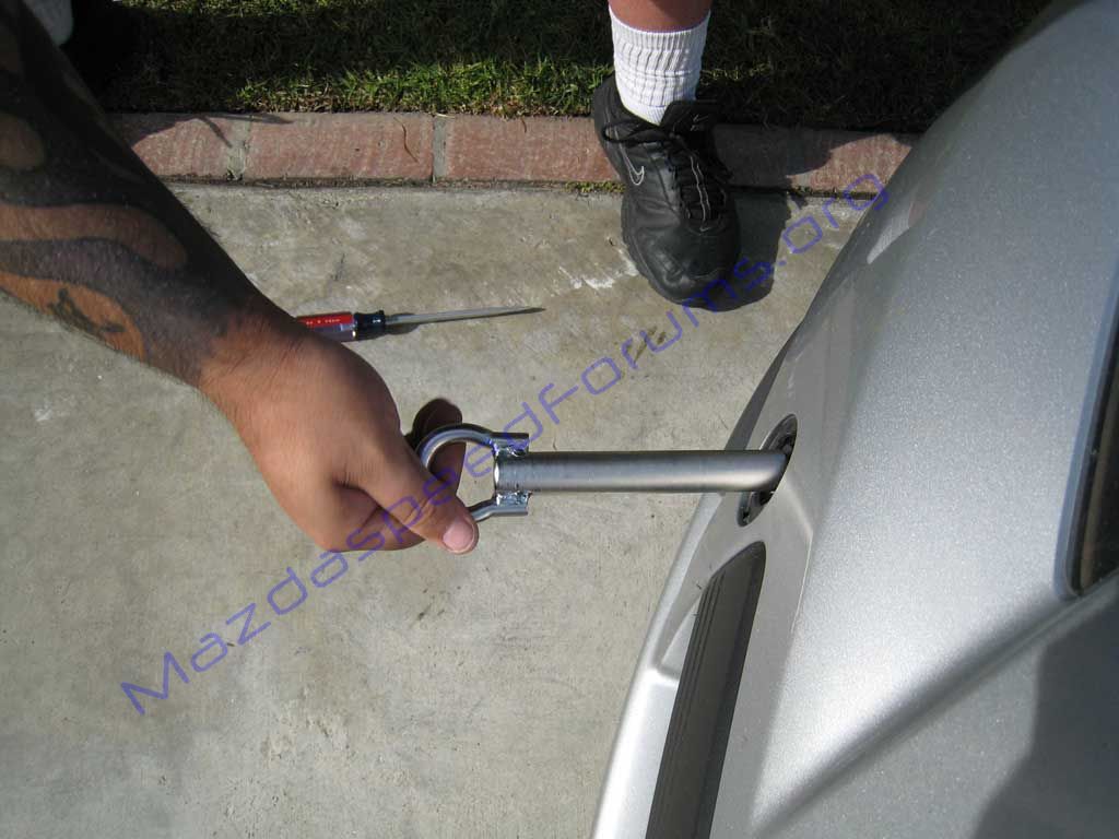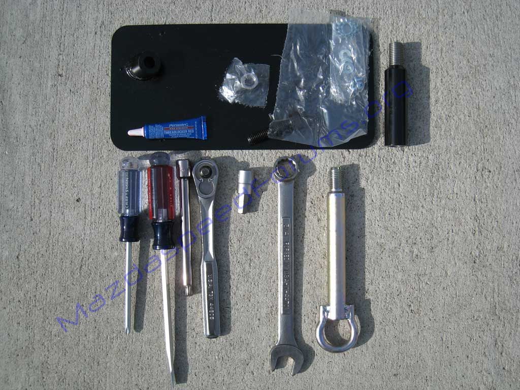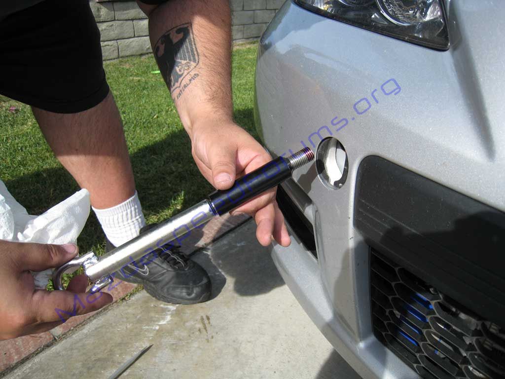 Installation Tools: Loctite Flathead screwdriver Phillips screwdriver 3/8ths allen wrench (common tool for american brake caliper replacement) 3/4 open/box wrench Original towhook located inside your trunk and a little thing we like to call common sense. ![]() Start by popping the tow hook cover on your bumper using a flat blade screwdriver as shown below: ![]() Tow Hook removed, detached from security cable ![]() Pull the CP-e towplate shaft and thread it with loctite. ![]() Now, take your stock towhook located in the trunk of your car and thread it into the CPe towplate shaft. You are using this an extension, therefore, no bumper removal is necessary in this step. Thanks Lenny! ![]() Now, thread the piece into the tow hook hole ![]() ![]() ![]() Now, you will need to separate the original tow hook from the shaft (this is why only finger tightening is required) As you start unthreading the tow hook from the CPE shaft you might want to apply pressure to the shaft with a finger to keep it from spinning itself out of the threads) ![]() ![]() « Back 1 2 3 4 5 Next» | ||||||||