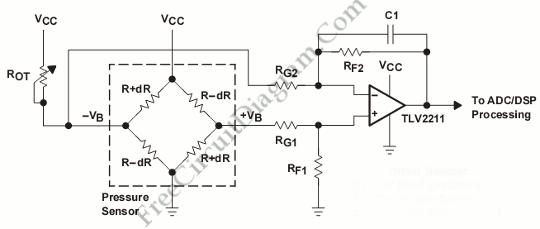 | Not Ranked : 0 score If anyone has a spare sensor taking it apart is not too tough. There is a pressure transducer in the tip (variable resistor essentially) and a potted PCB inside the casing. In heavy duty applications all sensors must be able to take above battery voltage even if they are rated for 5V and not break. This is a safety and reliability requirement and I am not sure if the same one exists in passenger vehicles. It seems that it may be the case. Edit: Here is what it likely looks like inside. The diamond like resistor setup is the wheatstone bridge. Edit 2: Better diagram. |