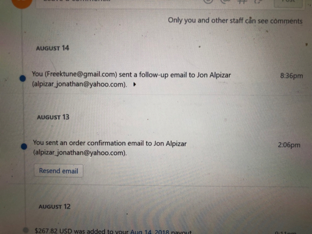 | Not Ranked : 0 score So you got an order confirmation email, a follow up email, and then a 3rd email. All with no responses back