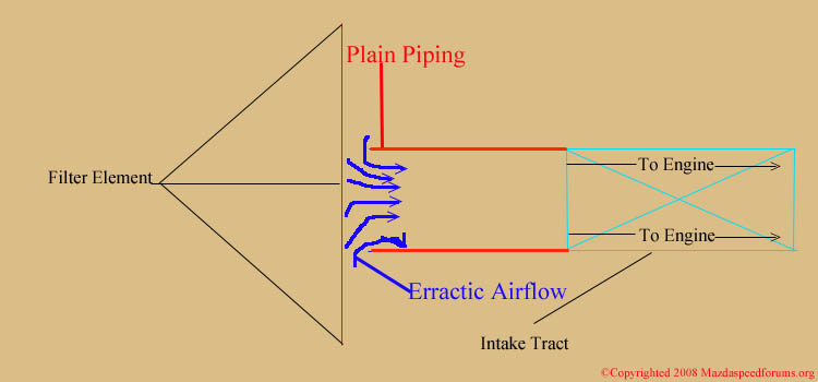 Look at the below image as an example how the Cobb SF SRI works to smooth incoming air into the MAF housing. ![]() The next image below shows you an example of how air enters typical intakes. ![]() Cobb's velocity stack: ![]() Next Up: Air Straighteners, Build Material & MAF Sensor Housing « Back 1 2 3 4 5 Next» |