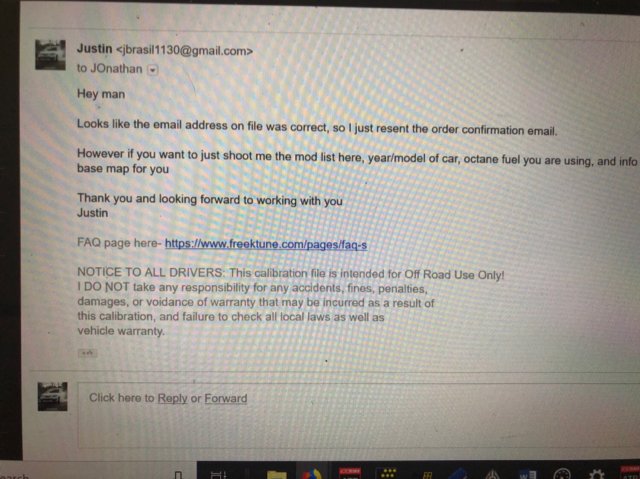 (Thread Starter) | Neutral : +1 score Yes that’s the problem, I haven’t received an email at all. And freektune charged me 275$ for the tune on friday 8/10 and i still have yet to receive anything about the tune and my BT will be done tommorow :’( so i’m SOL. Tommorow will be 6 business day since the purchase |